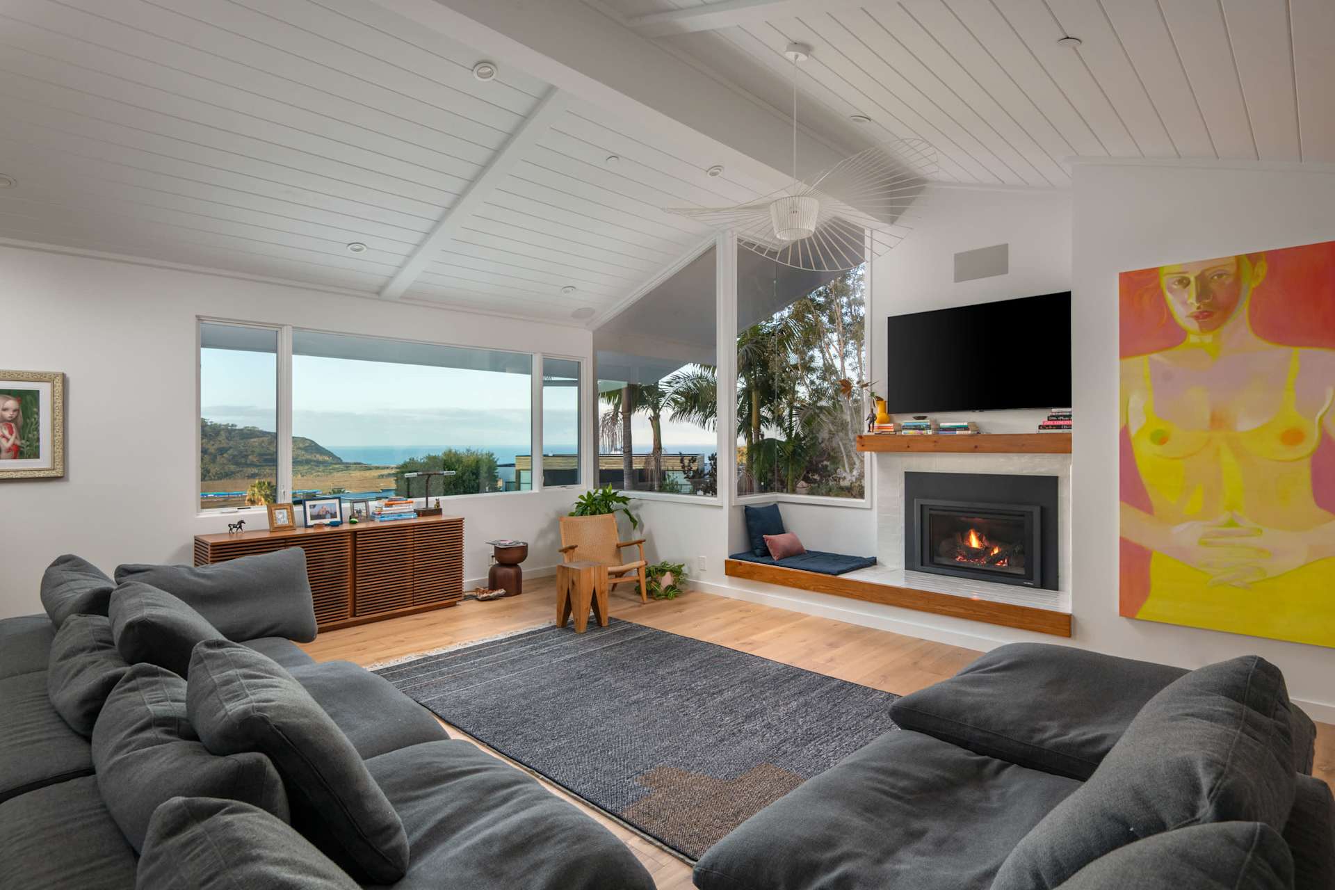 The home’s four bedrooms and remodeled 2.5 bathrooms are designed to provide a tranquil retreat, while the main living areas boast vaulted ceilings and expansive windows framing the ocean’s horizon.