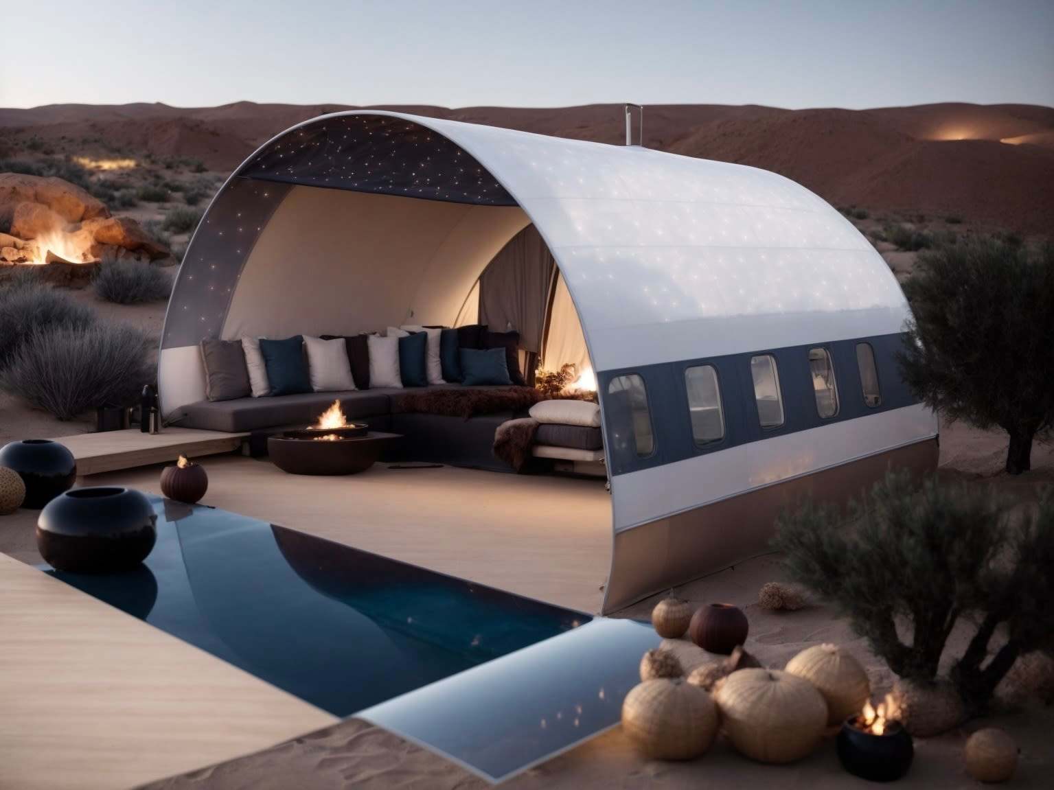 Each section of this architectural wonder is being designed to make you feel like you're in a cabin high above the clouds, even when firmly rooted to the desert floor. The interiors will boast a sleek, modern design, with windows repurposed from jet fuselage offering panoramic views of the stunning desert landscape. Imagine sipping your morning coffee while basking in the golden glow of a desert sunrise, all from the comfort of a luxury jet cabin.
