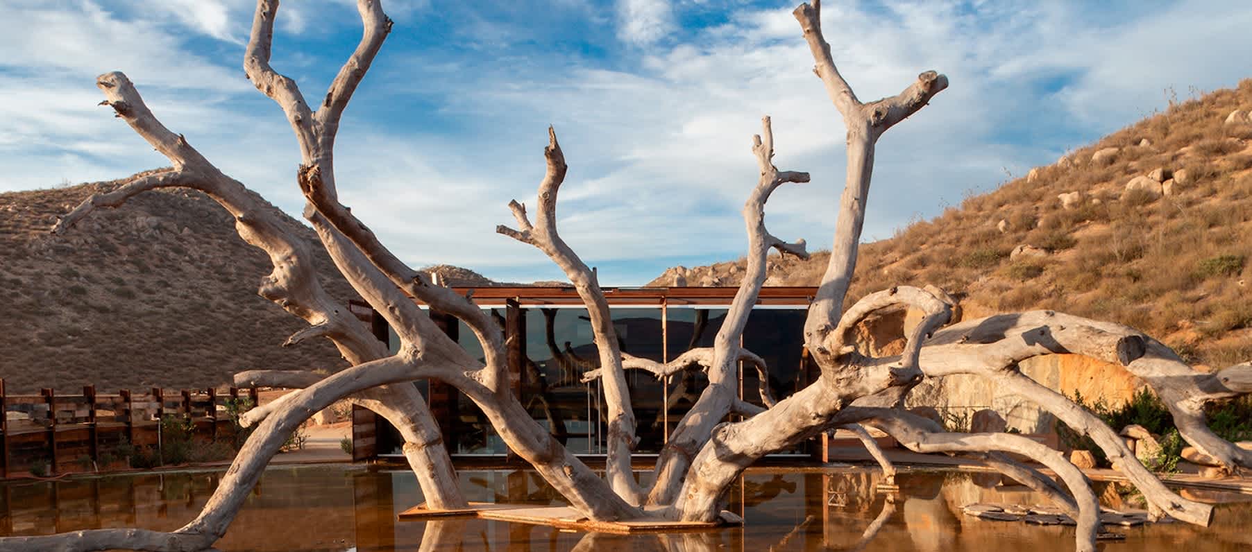 Bruma is a vision as much as it is a hotel. This 200-acre eco-luxury resort features a working winery, private ranch-style villas, and an eight-suite B&B with breathtaking views of the valley, complete with sun decks, a pool, a jacuzzi, a swimmable pond, fire pits, and rock art scattered around the property. Guests can enjoy a winery tour and tasting, as well as a meal at Fauna, where chef David Castro Hussong showcases his creative and vibrant take on Mexican ingredients.